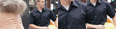 - 5.3 oz., 100% nylon dobby textured fabric overlays on shoulder, yoke and adjustable cuffs