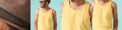 - 3/8” self binding on thin spaghetti straps, armholes and neckline