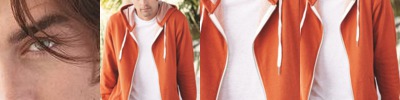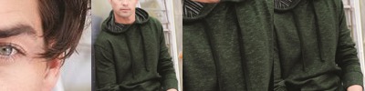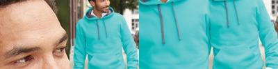 - Two-ply hood with rib trim, contrast color liner and drawcord