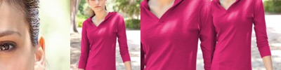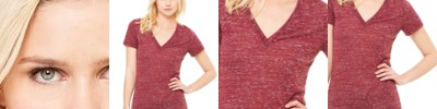 Soften your outlook in touchable jersey slub with trendy 3/4 sleeves.