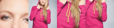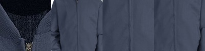 - Raw-edge hood opening, pocket seams, cuffs, waistband, zipper placket and side seams