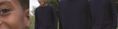 - Coverstitched collar, shoulders, armholes ribbed cuffs and waistband