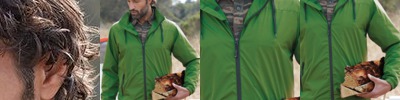 - Contrast hood lining, neck tape, flat drawcord, and sleeves
